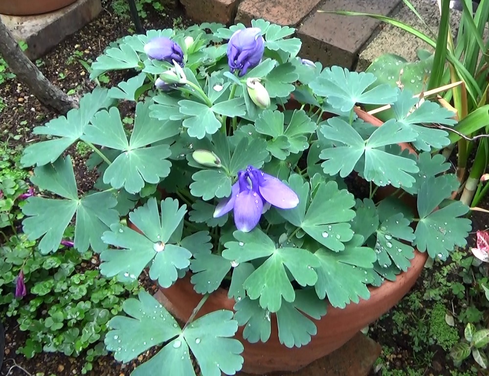 左下 同じく地植えで蕾のついたオダマキ